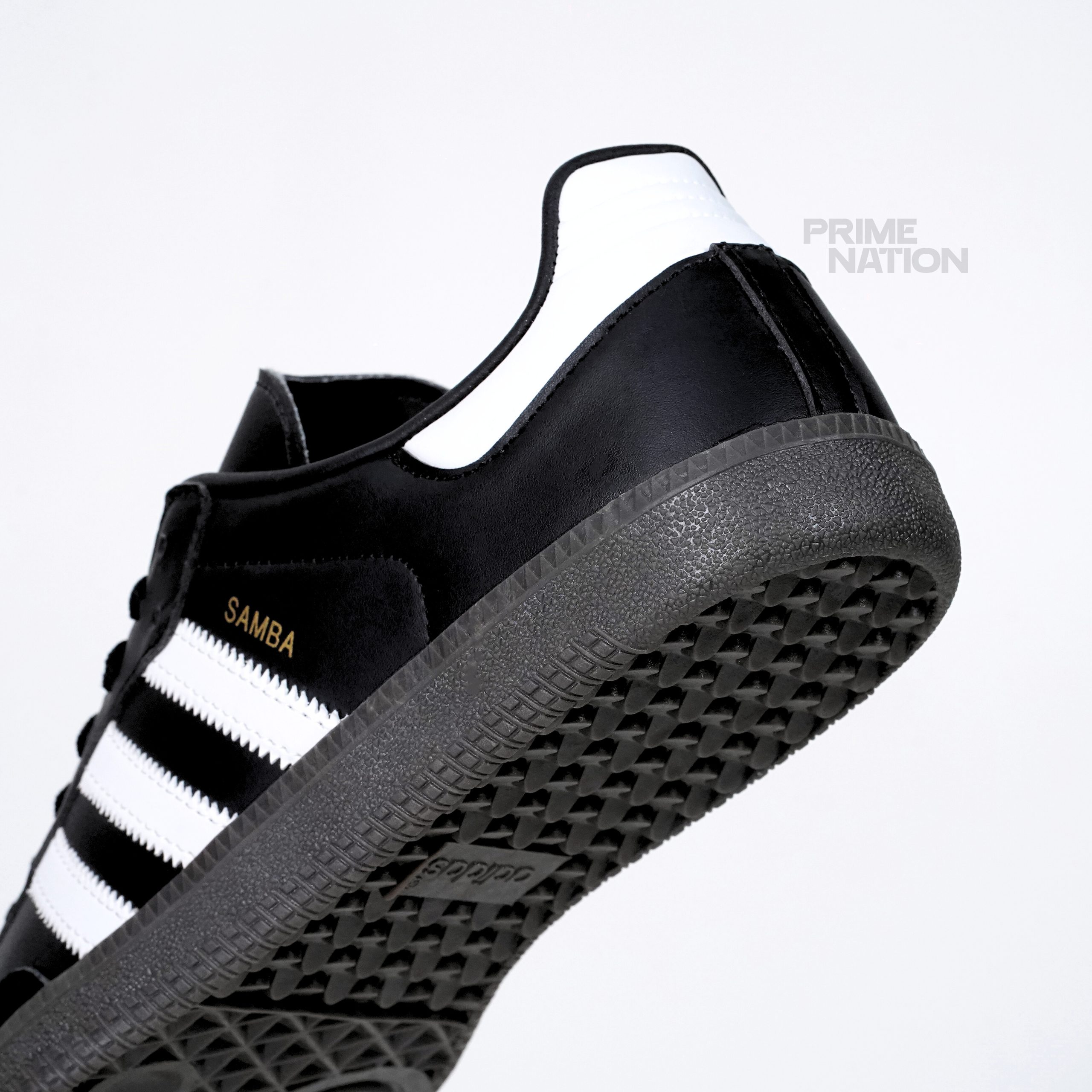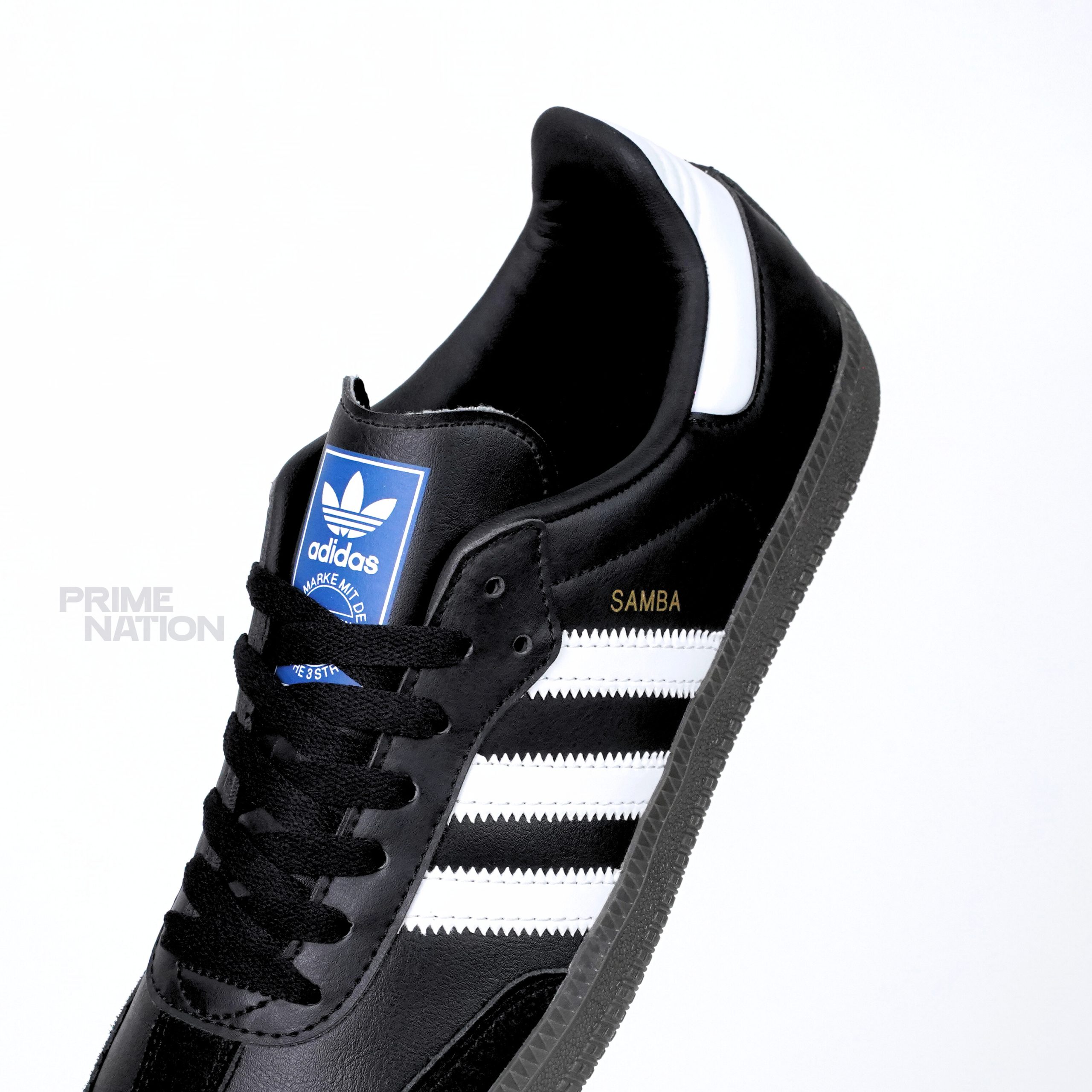 ✔ Iconic black leather upper with white 3-Stripes